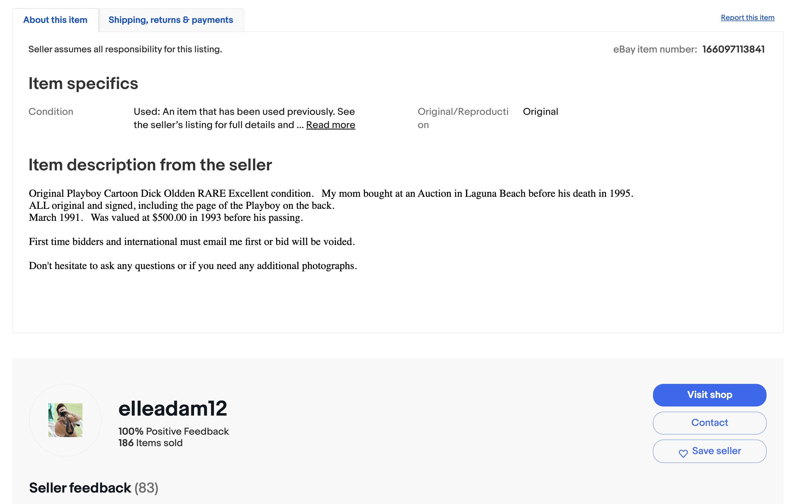 Richard Oldden Original art Playboy, March 1991, p. 154 |
