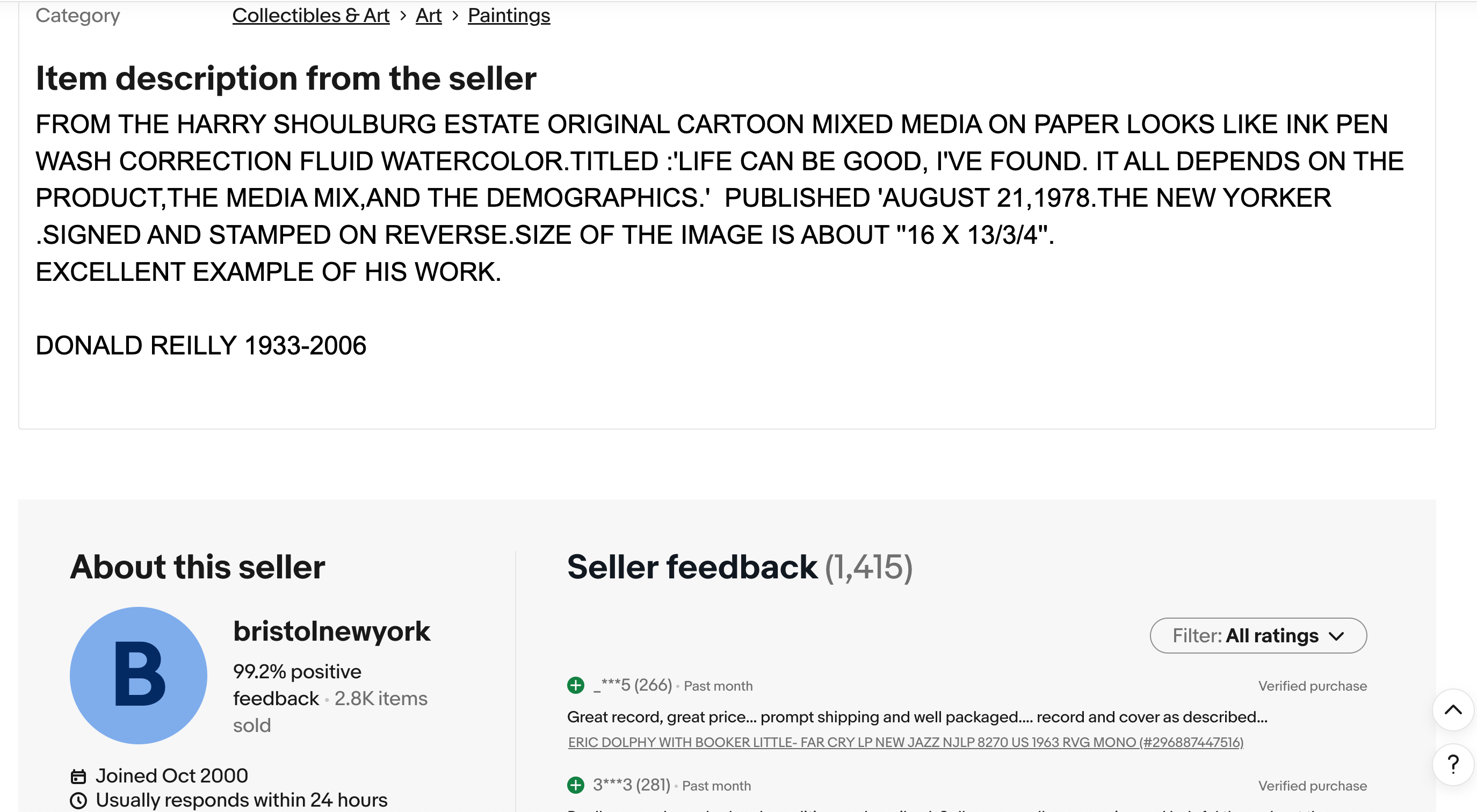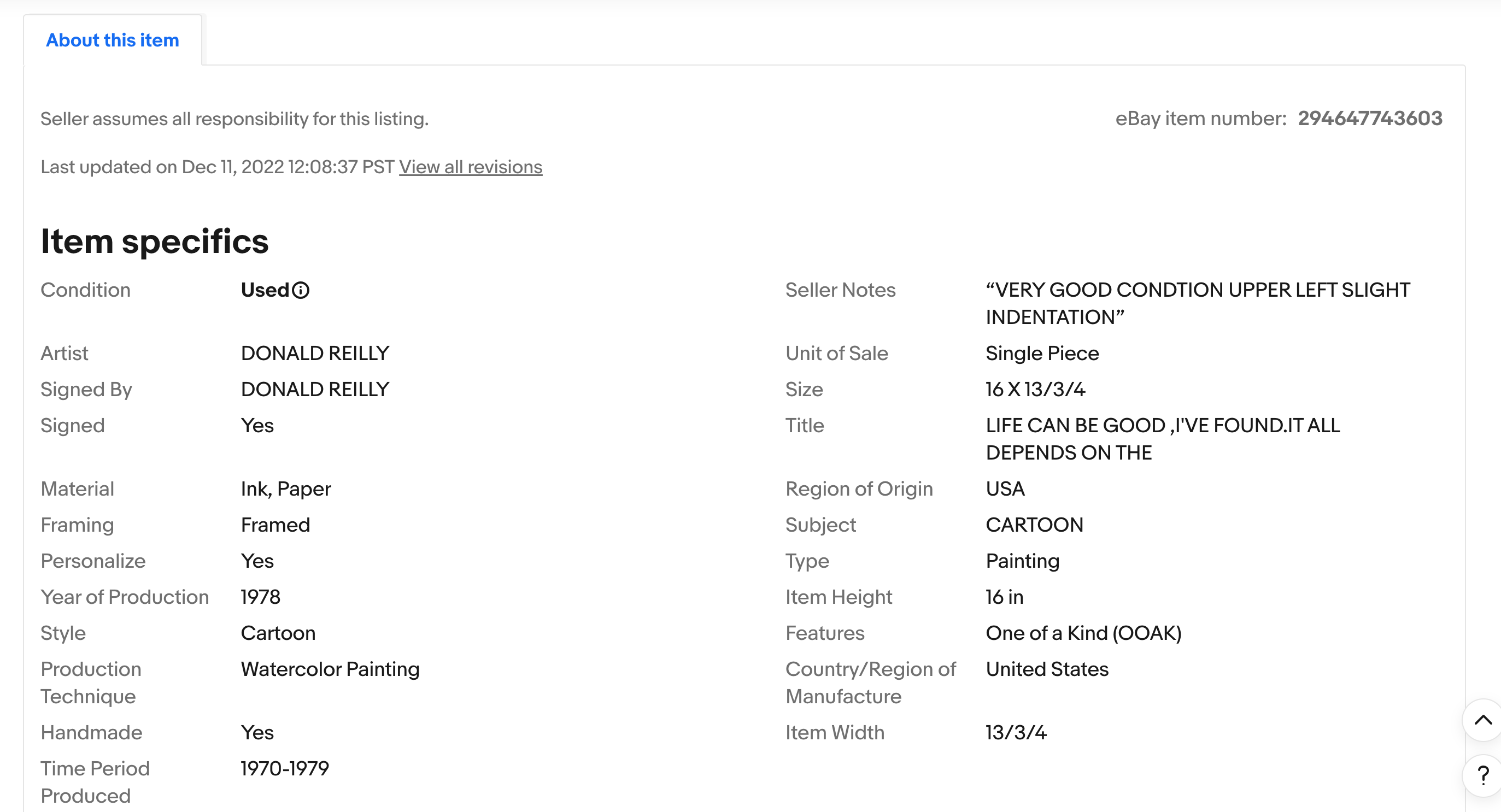 | Donald Reilly eBay listing ended May 23, 2025 |