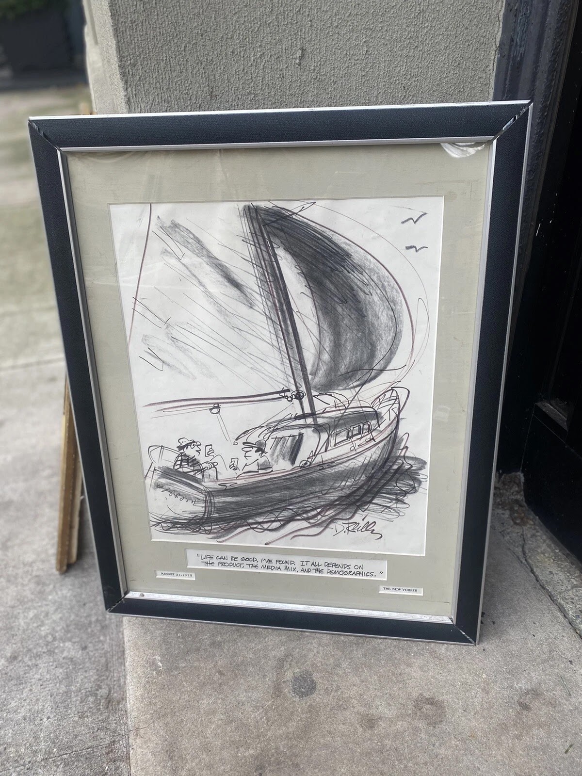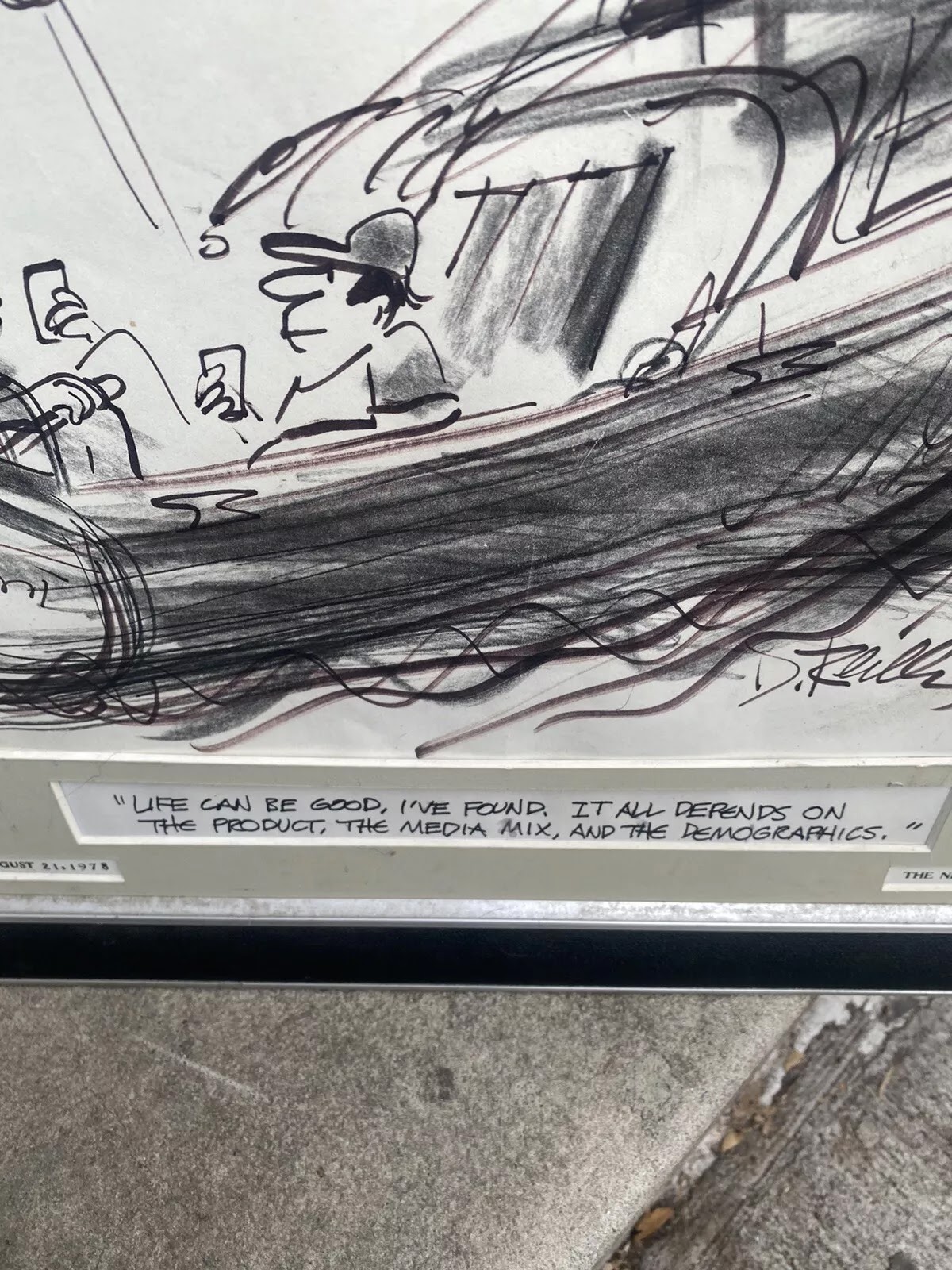 | "Life can be good, I've found. It all depends on the product, the media mix, and the demographics." Donald Reilly Framed original art The New Yorker, August 21, 1978, p. 27 |